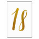 Table Number 18: This casual brush script table number card is set in a faux gold foil.