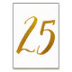 Table Number 25: This casual brush script table number card is set in a faux gold foil.