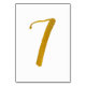 Table Number 7: This casual brush script table number card is set in a faux gold foil.