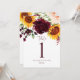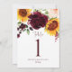 Table Numbers Sunflower Roses Burgundy Red Wedding