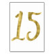 Table number cards - Number 15 - with gold foil effect (faux, printed as an image) on white background