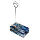 Table card holder is shown with a blue multi color and gold ink swirl art print design.