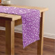 This table runner is shown in a purple color and has a cute white polka dot print.