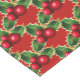 This Christmas holiday table runner is shown with a Red background color and has a pretty red holly print design.