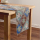 This Table Runner has a print of maple leaf tiles. It's colors include green, brown, blue and ocher. This is a perfect accent for your Craftsman Bungalow, Cabin, Lodge or vacation home. This print comes from the Craftsman handmade tile from Oregon Tile maker Fay Jones Day.