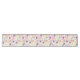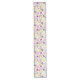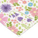 This table runner is shown in a lovely spring flowers print in colors of pink and purple on a white background.