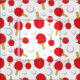 Fun white fabric with a pattern of red table tennis paddles and balls