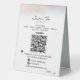 Energetically Enhanced watercolor ABSTRACT WATERCOLOR GOLD FOIL GOLD GLITTER and PASTEL RAINBOW colors PINK AQUA MINT LAVENDER ON WHITE Table Tent using QR Code for Payment. You choose which Payment Method to code into the QR Code.