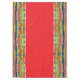 Years ago I got a matching runner from elsewhere and was so thrilled to find this same pattern offered as a tablecloth. The material is very high quality and it is well-constructed. Also it got here just in time for my party tomorrow! Would buy from this seller again. Colors are very sharp. It’s perfect. Well done