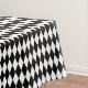 Cotton tablecloth shown in a black and white Halloween harlequin diamonds print design.