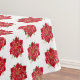 This Christmas holiday cotton tablecloth is shown in white with a pretty red poinsettias print design.