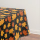 This lovely tablecloth is shown with a autumn falling leaves print design on a black background color.