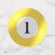 In the 19th century a poolroom was a horse race betting parlor. Pool tables were installed so the bettors could pass time between horse races. Billards, or pool, is the descendant of a game similar to croquet that was played in 15th-century Europe. Though we don't know for sure, it is strongly suspected that billiards came to America with Dutch and English settlers. By the 1700's, skilled cabinet makers were crafting beautiful tables, though the equipment was, otherwise, quite primitive. Fifteen-ball pool came on the scene in the late 1800's and grew in popularity through the 1940's. Billiards was revived in 1961 with the release of the movie THE HUSTLER. It enjoyed another surge in the mid 1980's with the release of the movie sequel, COLOR OF MONEY. Since that time, there has been an evolution of the environs in which we find pool tables -- they're in restaurants and night clubs and sports bars, allowing pool to find a modern audience and new generations of enthusiasts. This marvelous design features the bold, yellow ONE ball . . . making this tablefetti an excellent choice for 1st birthdays, anniversaries . . . or any other notable first. The reverse is a coordinating solid yellow featuring text you may personalize to your special "first" event.