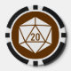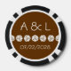 Give the guests, bridesmaids, groomsmen, or anyone else attending or helping with your geeky wedding or special event a fun treat with these customizable poker chips. One side of the poker chip features a white twenty sided die on a rich chocolate brown background. The other side has a sample set of initials and date separated by a pattern of d20s. The sample text can be customized with your own details or a special message of your choice to create a unique and personal token to commemorate your big day. This design will match any product from the Tabletop Chic in Chocolate line so that you can make your tabletop themed wedding or special event as coordinated as you like.