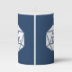 Two twenty-sided dice in white flank text that can be customized for your event's details on a deep navy blue background, creating a classy and simple decoration that is perfect for any gaming-themed wedding reception or other geeky event. Change the names and dates to match your special day's information or change them out for table numbers or identifiers for an alternate way to mark tables.