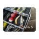Photograph of an open tackle box filled with fishing lures, bobbers and the words "gone fishing" printed below. Image copyright 2014 by Margaret E. Cmelik.