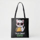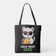 A cute white Kawaii kitten holding a yummy taco with the words "Taco 'about Cute".