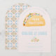Invite your friends and family to your couples bridal shower with this sweet invitation featuring a taco with text that says "Taco 'bout love." The back has a coordinating Mexican Talavera Tile pattern. Colors used include, sage green, pale pink and light blue.