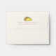 This simple and modern envelope features your name and your address with pair tacos on a cream background. The inside of the envelope features a coral pink background with patterns of white arrows. Personalize it for your needs.