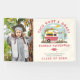 "Taco Bout A Grad" graduation theme featuring illustration of taco cream truck camper with cactus and papel picado. Personalize the photo at left.