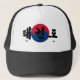 Tae Kwon-Do in Korean calligraphy big text /English small text with flag in back