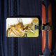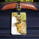 The custom template luggage tag is adorned with tabby cat bathed in light on one side. A watercolor filter was added to the original photo. Fill in the template field with your information or click Customize it! to select a font style, size and color you like.