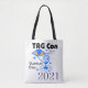 TAG Con 2021 Quantum Blue Convention Swag Bag commemorating the second annual, virtual online convention for TAG Fans -- Fans of The Atlantis Grail series of science fiction books by Vera Nazarian. Plenty of room for books and all your goodies!