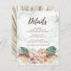 Island inspired wedding Details card features an arrangement of tropical hibiscus, flamingo and jasmine flowers and palm leaves with an aqua blue watercolor wash background. The reverse side is an abstract fan palm leaf in shades of khaki beige and taupe. Personalize with important details for your guests such as accommodations, reception information, and your wedding website. Perfect for beach, destination and tropical themes.