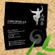 A striking black-and-white business card design for Tai Chi and Qigong professionals. The front features the silhouette of a practitioner in motion, paired with the Chinese characters for Tai Chi Chuan (太極拳), symbolizing discipline, balance, and tradition. The minimalist dark background gives the silver-toned artwork a sense of strength and clarity. On the back, instructor details are arranged cleanly alongside the Taijitu of Lai Zhide, the spiral yin-yang diagram, reinforcing the continuous flow of yin and yang energies. A bold yet refined choice for instructors and academies who value simplicity, authenticity, and impact.
