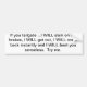 If you tailgate...I WILL slam on my brakes, I WILL get out, I WILL come back instantly and I WILL beat you senseless. Try me.