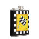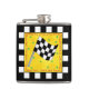 Show your love of racing (nascar, dirt, drag, motorcycle, etc) with your flask featuring a black and white checkered flag and personalized with your name on the back. Great to carry your favorite beverage to a race party or for tailgating. Customizable so that you can personalize your name, location, business or favorite driver or say congratulations either below the flag or below the entire design - its easy to customize to add a word or date for a gift to a driver. A waving black and white checkered flag is centered on a textured yellow background. A black and white checkered border surrounds the art. This is an original art design by Phyllis Dobbs.