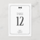 Set a refined table for your wedding celebrations with this contemporary black tie table number design. Featuring sleek graphics that echo the refined details of a classic tuxedo, this wedding collection includes elements like pleated patterns, crisp whites and glossy black accents for a tailored, modern vibe. Perfect for two-groom couples who love bold minimalism, this design delivers an effortlessly elegant aesthetic that’s both timeless and sophisticated. Search ID1090 to see other pieces in this coordinated wedding set.