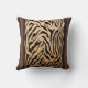 Animal skin patterns have been a perennial favorite since dawn of the Cave Man yet there still room to get creative with it. This pillow combines a pale apricot + black tiger stripe w/ borders of russet brown + black.
