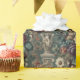 Part jester, part menace—Take a Bow weaves decadent blooms with a crouching grotesque caught mid-curtsy beneath crumbling statuary and tangled scrollwork. Blush roses and plum dahlias frame the scene like stage lighting, while teal foliage whispers of forgotten applause and lingering dread.