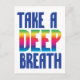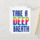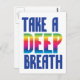 Take a Deep Breath inspirational message to promote relaxation and remind someone to breathe and stay calm and centered. Can be sent as an encouragement card for someone who is having a hard time. Typographic design with blue and the word "deep" in a rainbow blend of colors.