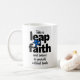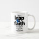 The artwork features a bold graphical motivational print "Take a leap of faith and believe in yourself without limits." The word "of" is artfully designed to appear as a leaping person. The colors can be changed to your liking by editing the design. Feel free to transfer this design onto other Zazzle products.
