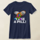 My overall review is that the T-shirt is nice, it fits true to size however the font is significantly smaller than advertised and you can't read it. The printing is unreadable and there is a strain to read it. It does not look like the advertised product. Maybe the shirt color is darker or a larger more visible font should have been used. Photos with and without flash and font is barely legible.