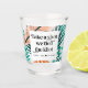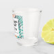 Tropical wedding keepsake favors for your beach wedding guests. Shot glasses featuring a tropical pattern with black text design that reads - Take a shot, we tied the knot. Customize with your names and wedding date.
