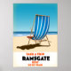 Take a Trip to Ramsgate, Kent vintage style ravel poster art print of a retro deck chair on the sandy beach,.