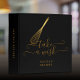 An elegant recipe binder featuring a chic gold whisk on a stylish black background with your personalized name aset in modern gold typography. Designed by Thisisnotme©