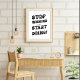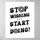 This bold, dynamic design encourages you to turn dreams into reality with its striking "Stop Wishing, Start Doing!" message. The playful, retro-inspired font with target-like circles adds an energetic and determined vibe, perfect for any space that needs a dose of motivation. A fun mix of whimsy and drive, it’s a daily reminder to keep moving forward.
