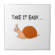 The message from the snail is: take it easy. Original cartoon character. Custom square ceramic tiles. Unique gift idea.