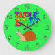 Take It Easy Cute Cartoon Snail With Groovy Text Large Clock