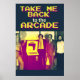 Take a nostalgic trip into nerd history with this Take Me Back to the Arcade retro poster design! Featuring the granddaddy of videogaming from 1977, Pong -- alongside its creators and promoters. (Atari founders Ted Dabney and Nolan Bushnell are pictured with finance guru Fred Marincic and the Pong video game creator Allan Alcorn!) This novelty poster is a perfect statement for your arcade, garage or home decor!