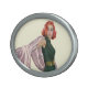 Artist: Coby Whitmore | Red haired woman in a green dress holding out a pink shaw.