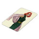 Artist: Coby Whitmore | Red haired woman in a green dress holding out a pink shaw.