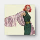 Artist: Coby Whitmore | Red haired woman in a green dress holding out a pink shaw.