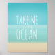 Take me to the ocean... where life is better. Contemporary typography in white is printed on a gradient background of sea, sand and sky colors.