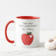 Imagine surprising your favorite teacher with this inspirational mug or buy it for yourself. Design features a customizable Title and name along the top. It also includes cute, fun image of a book worm reading a book on top of a red apple with a white heart in a watercolor style. Perfect item to add to the classroom!