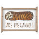 Tray design features an original marker illustration of an Italian chocolate chip cannoli pastry, with TAKE THE CANNOLI in a fun brown font.